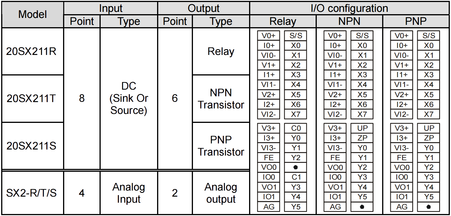 SX2 układ wejść wyjść