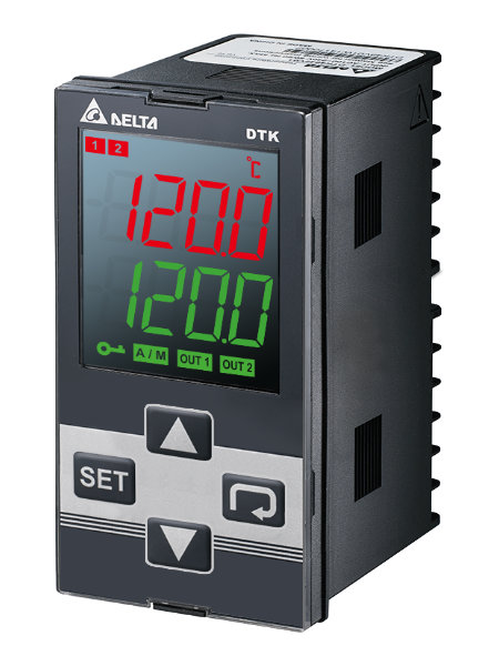 Regulator temperatury serii DTK, 48×96 mm. Wyjście prądowe, 2 wyjścia alarmowe. Zasilanie 230 VAC