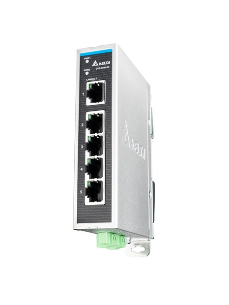 Switch ethernetowy, 5 portów 10/100Mbps, zasilanie 12-24V DC, metalowa obudowa, mocowanie śrubowe lub szyna DIN35, IP40, warunki pracy -20..+70oC.